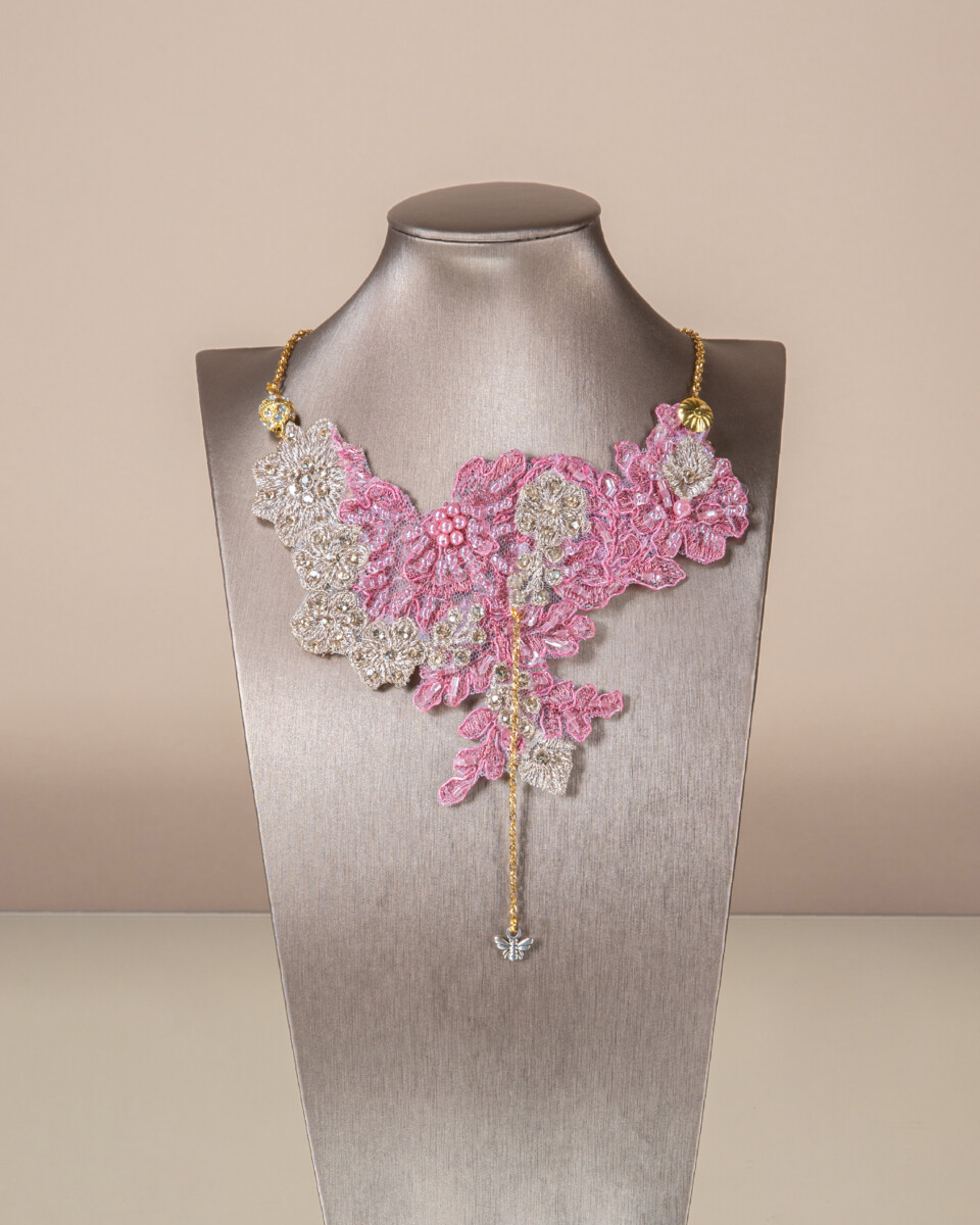 Collana in Merletto Upcycled – Rosa e Argento